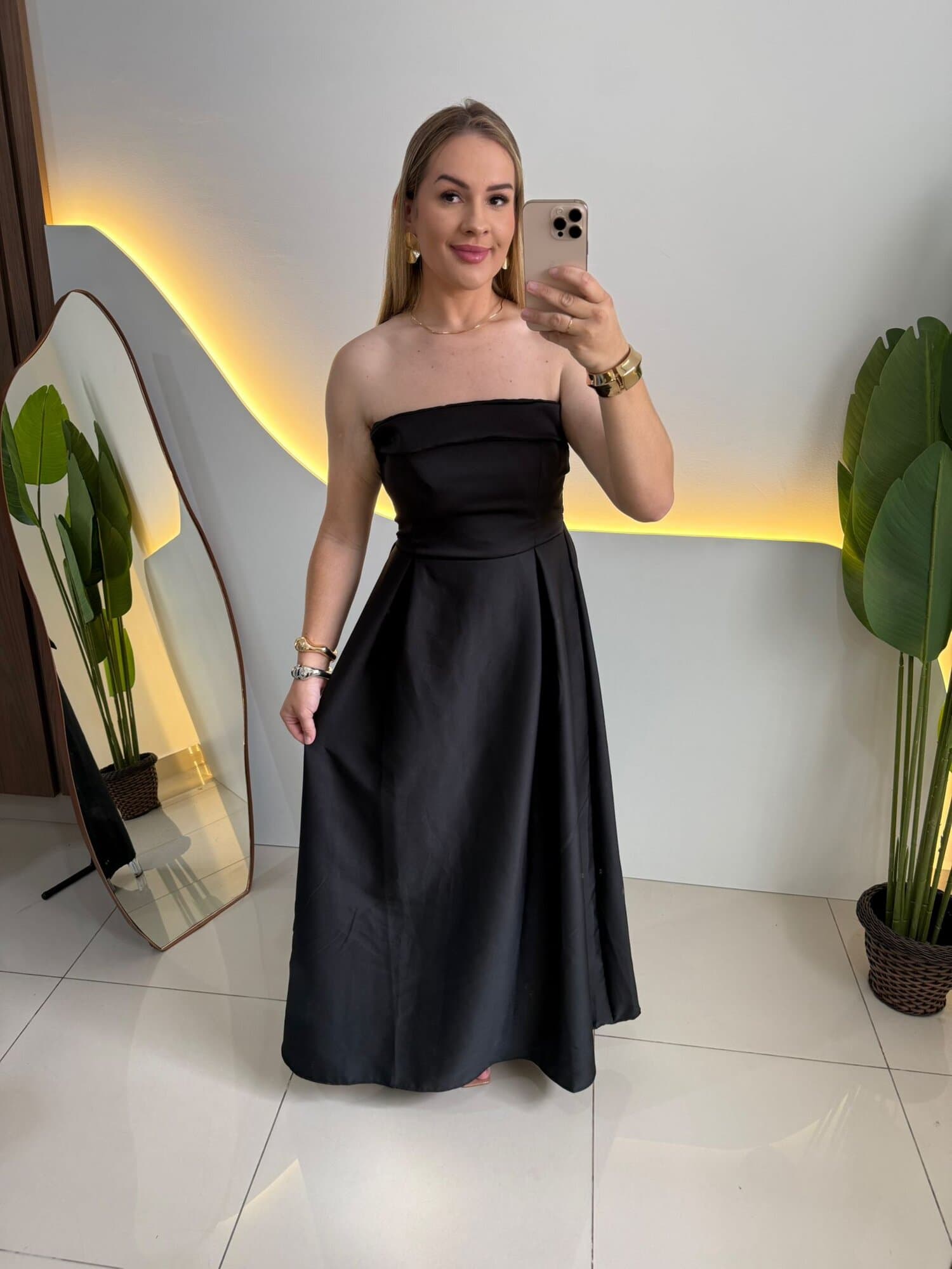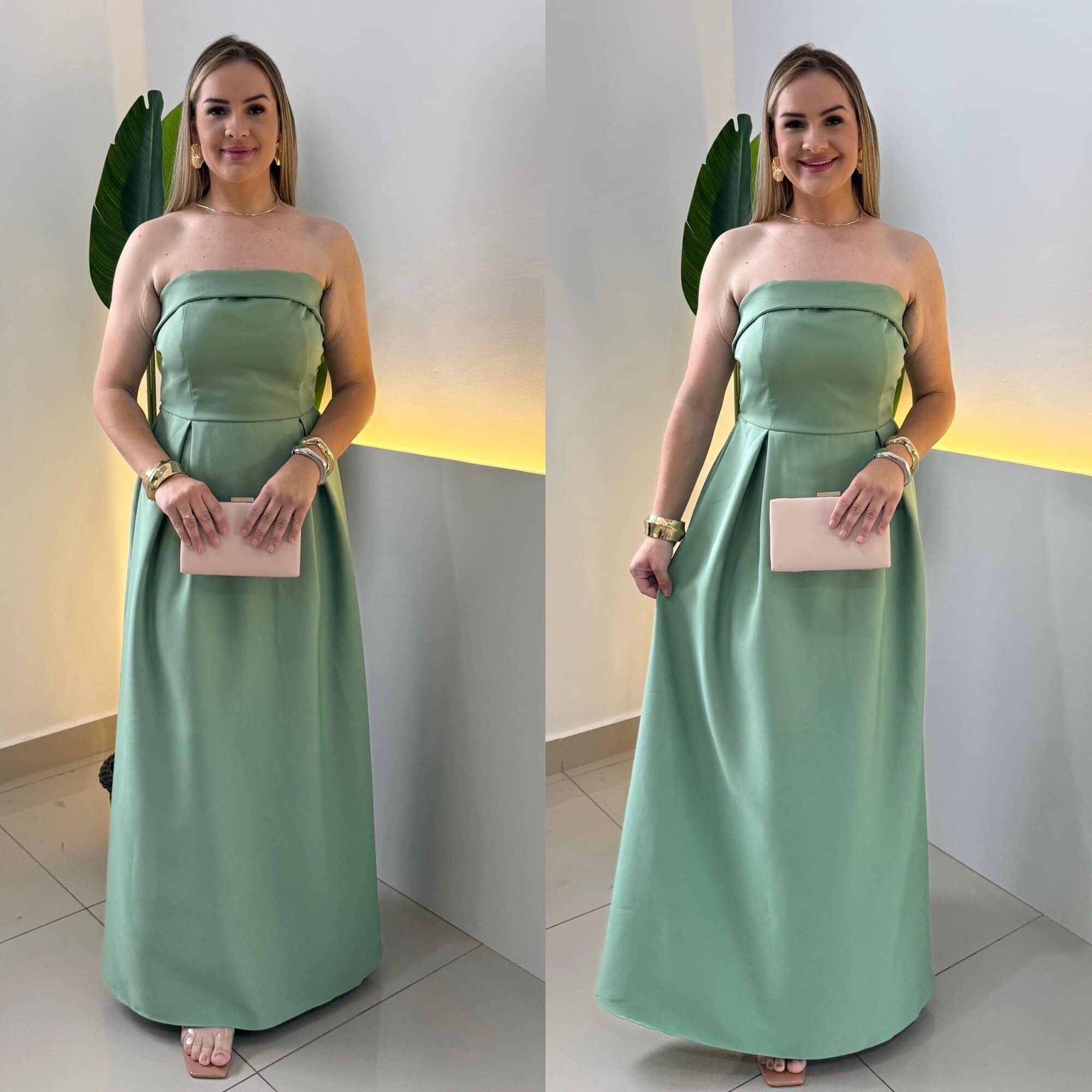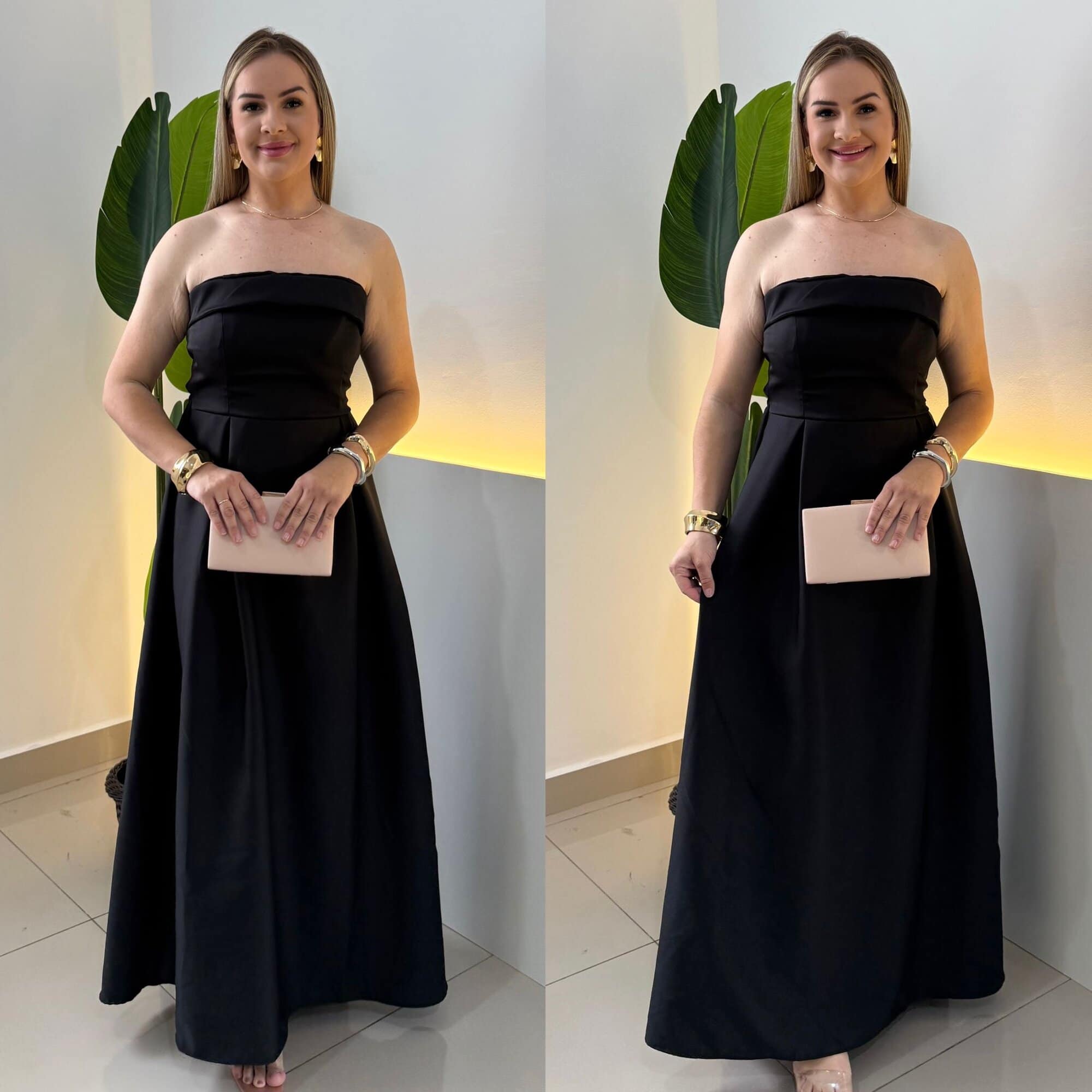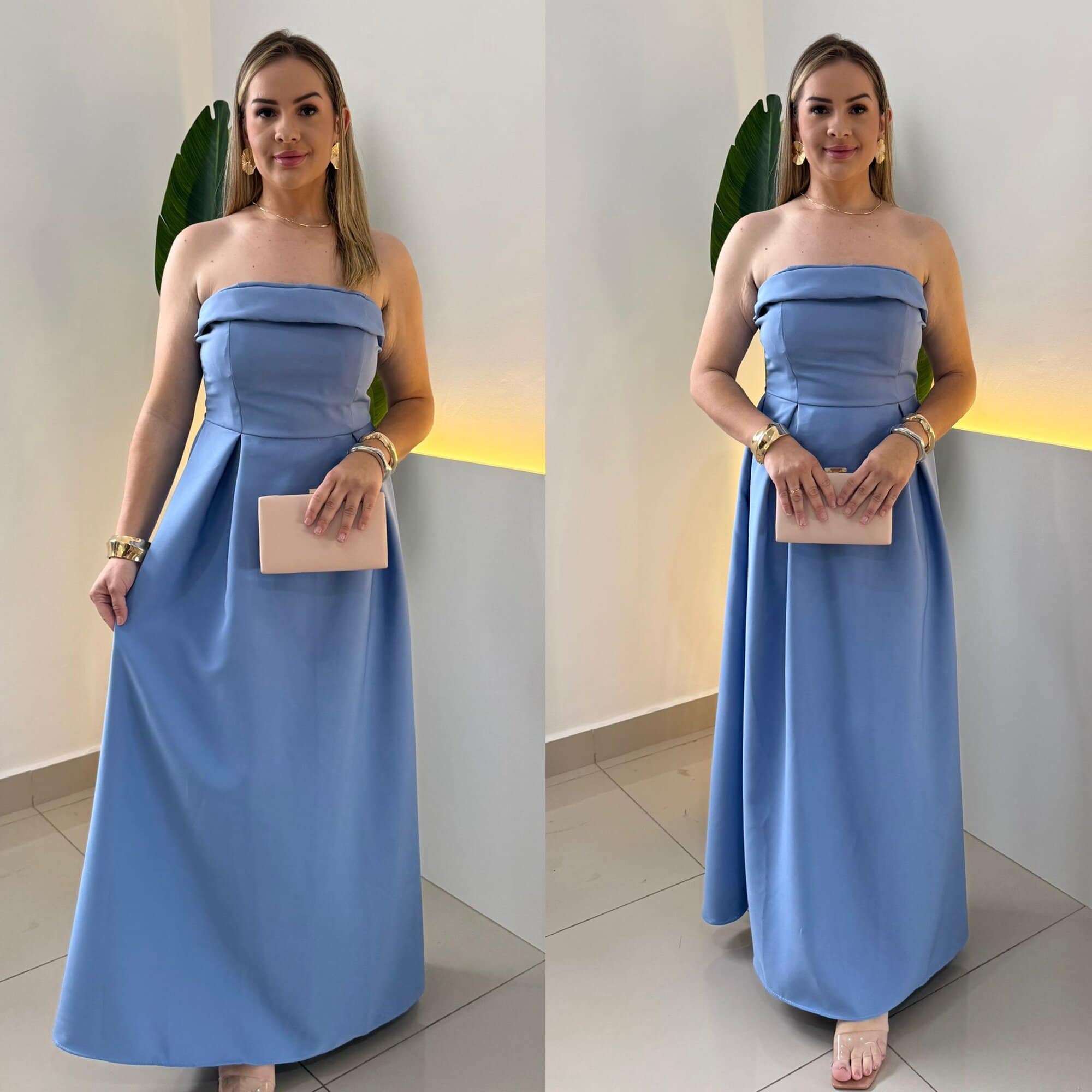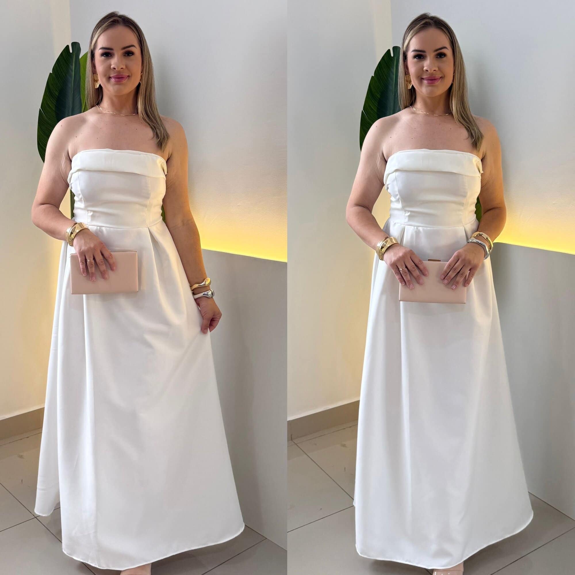 Decote tomara que caia que valoriza o colo;
