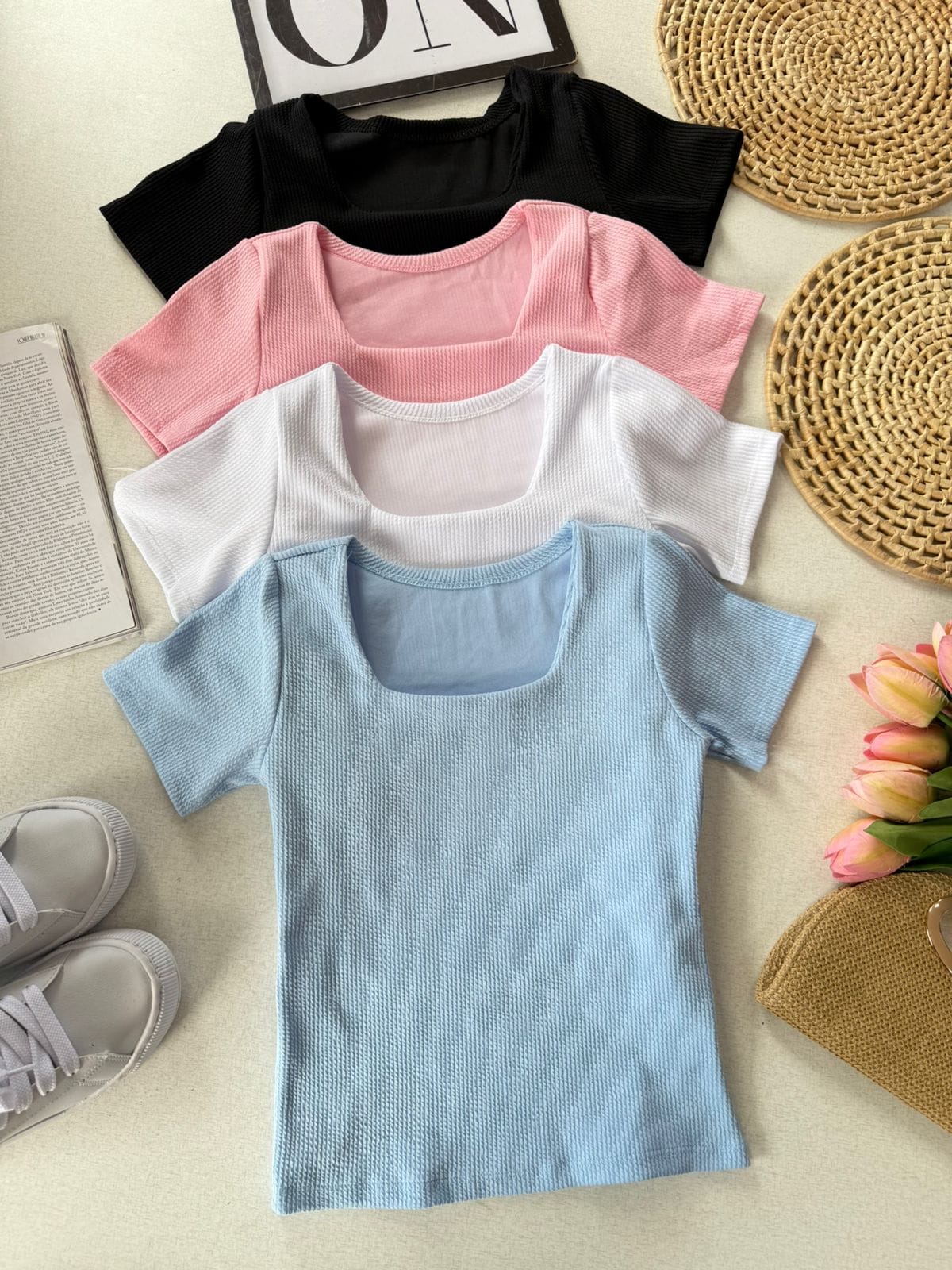Decote quadrado estruturado;