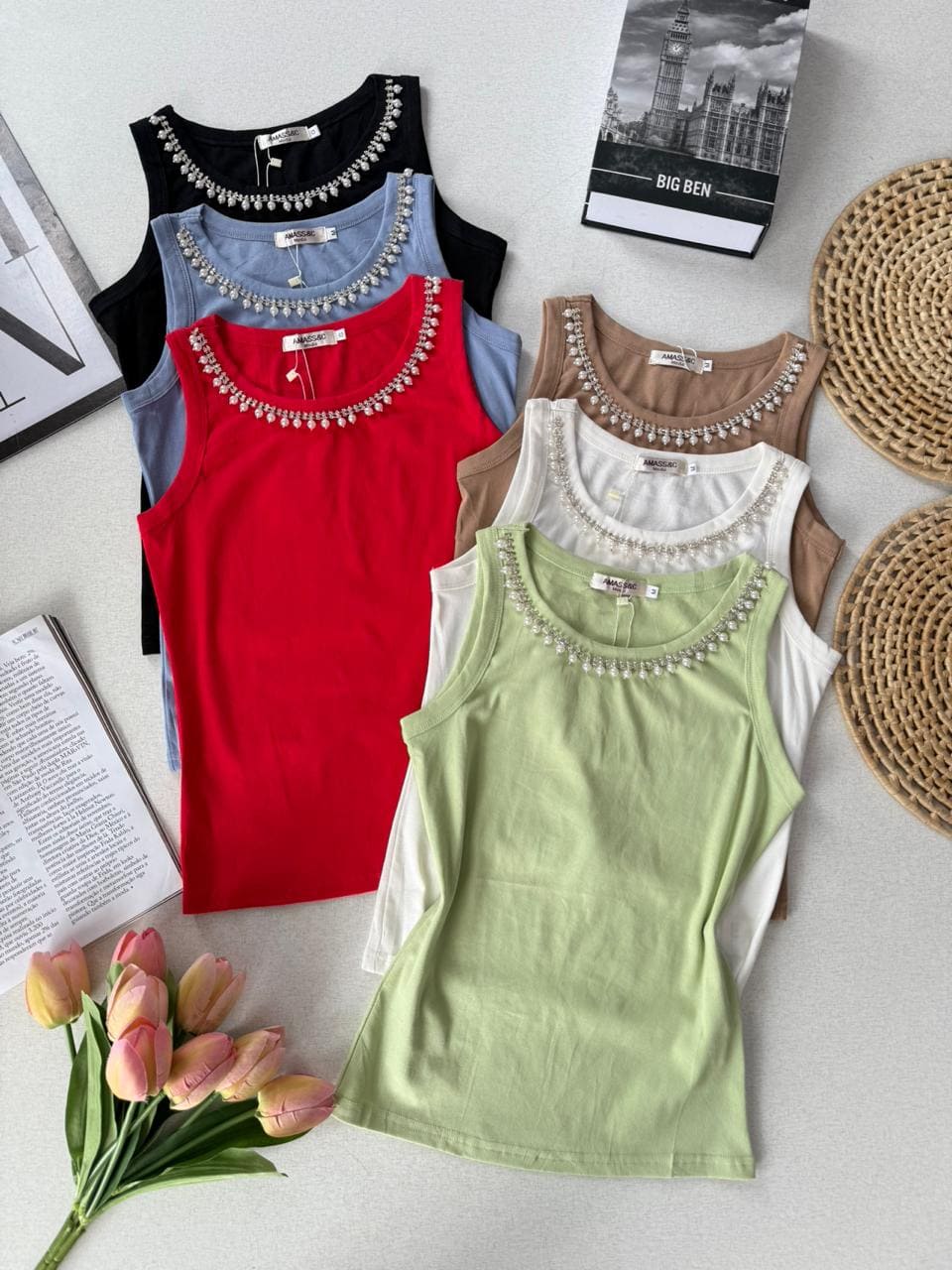 - Blusinha regata sem manga;