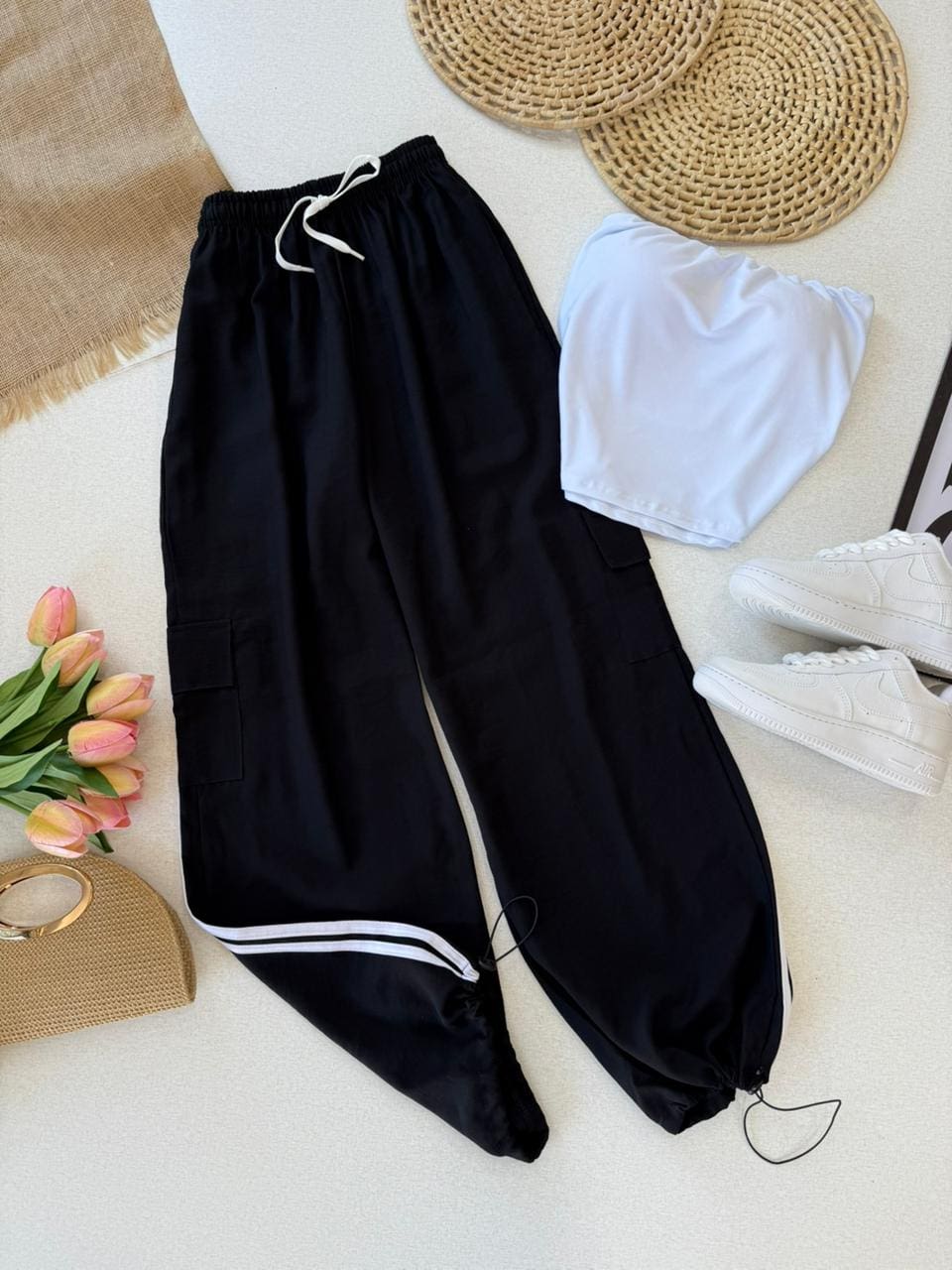 - Elástico na cintura;