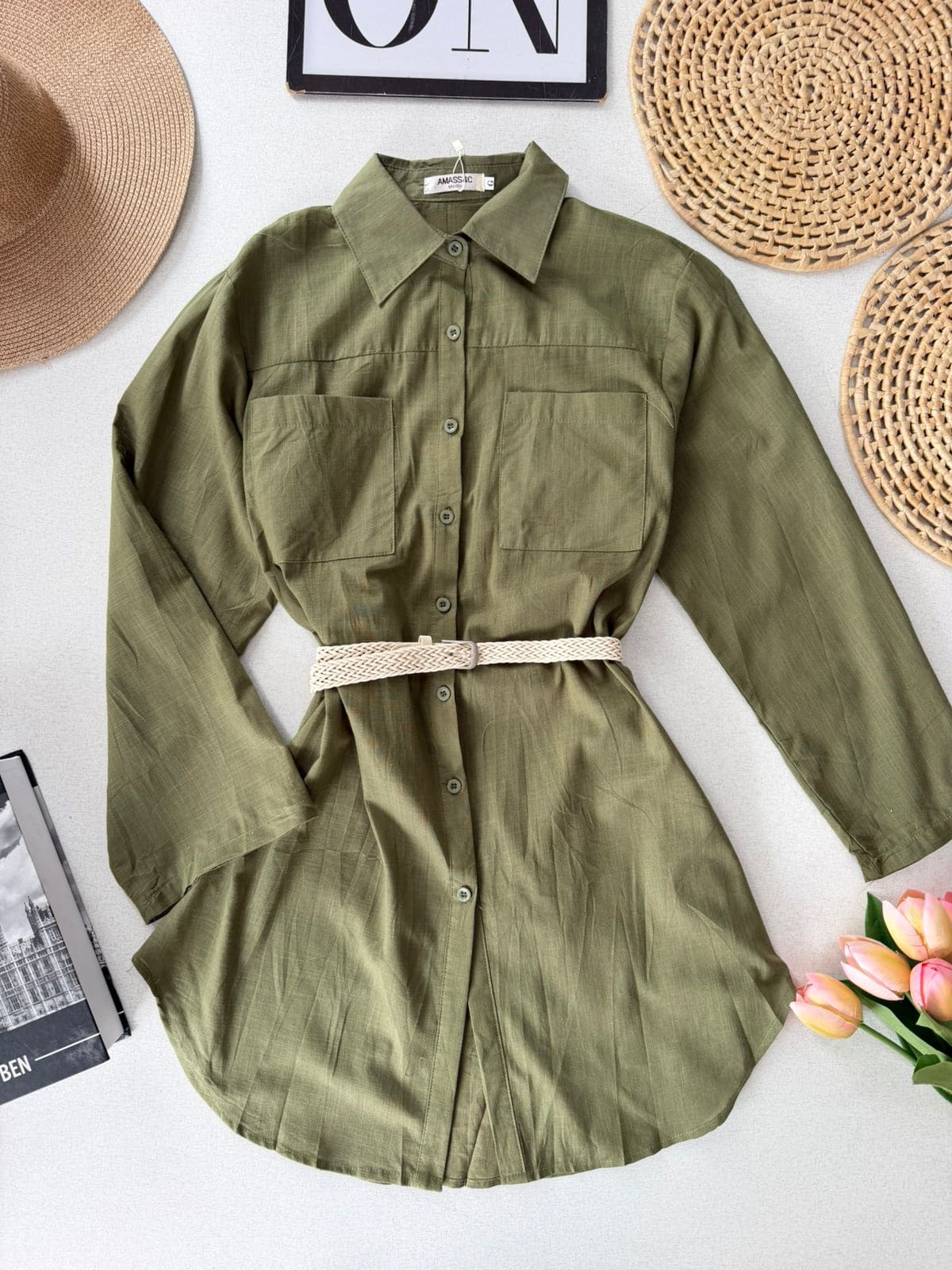 Chamise em Linho com Cinto 000259
