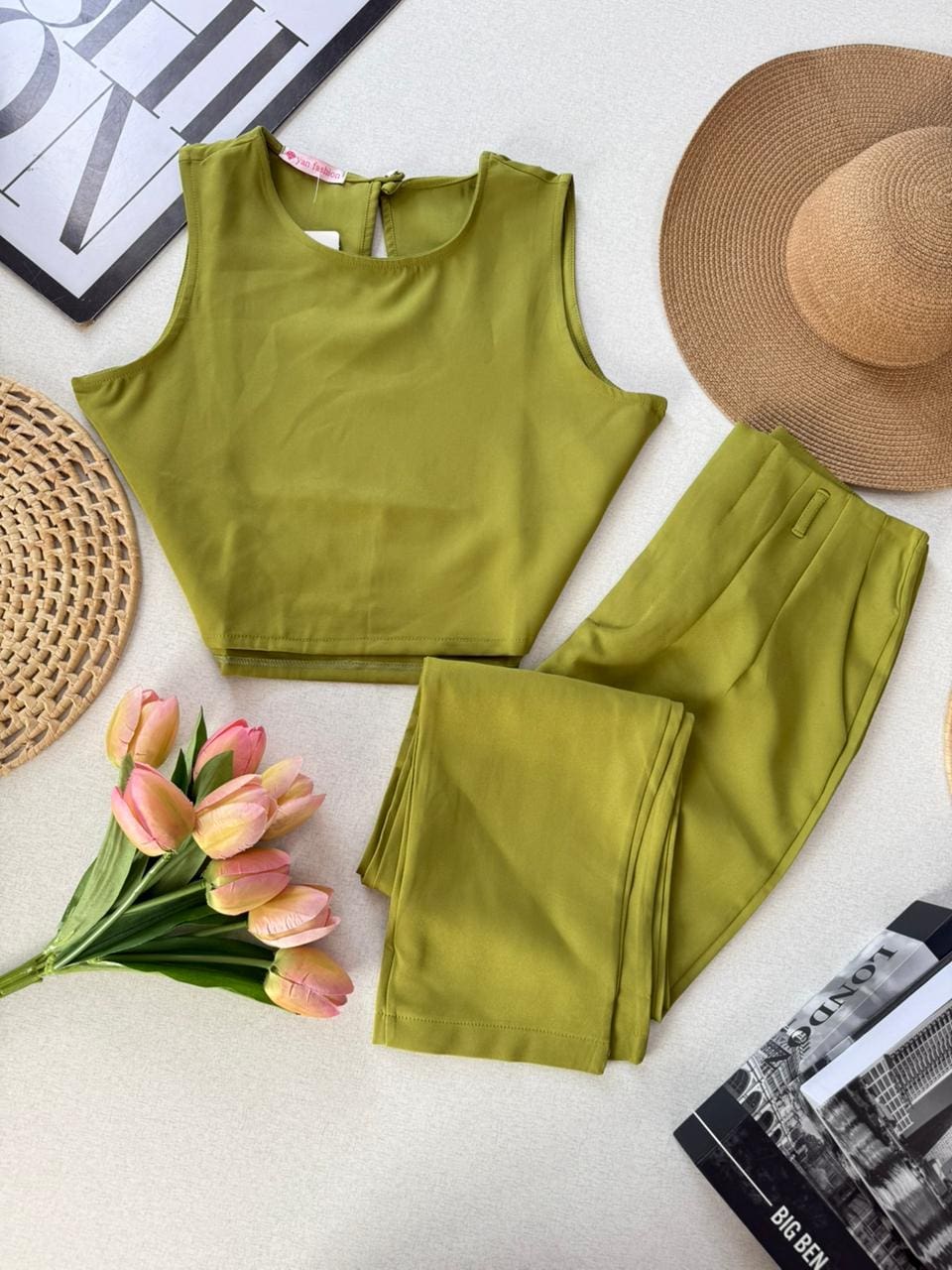 Calça cintura alta;