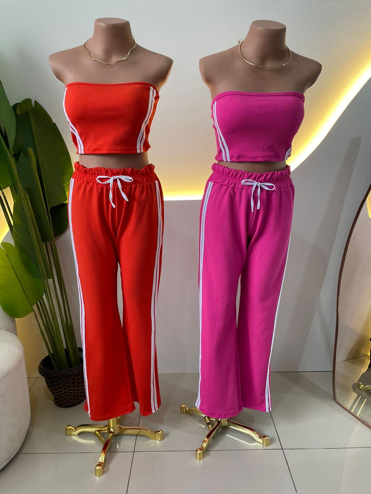 Calça: cintura 30 cm, quadril 45 cm, comprimento 105 cm