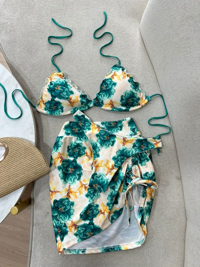 Conjunto 3 peças: top + calcinha + saída de praia;