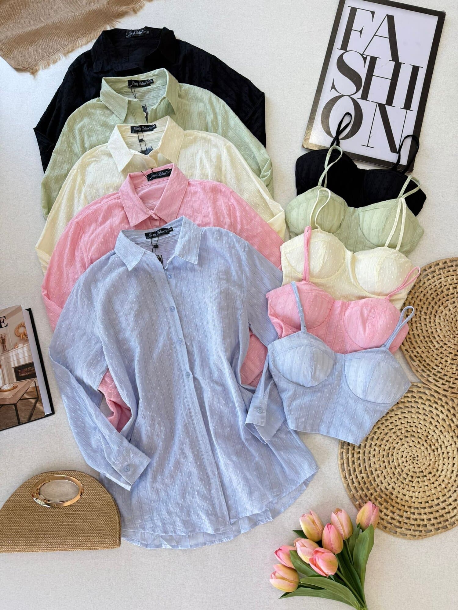 - Possui colarinho clássico e mangas com acabamento refinado;