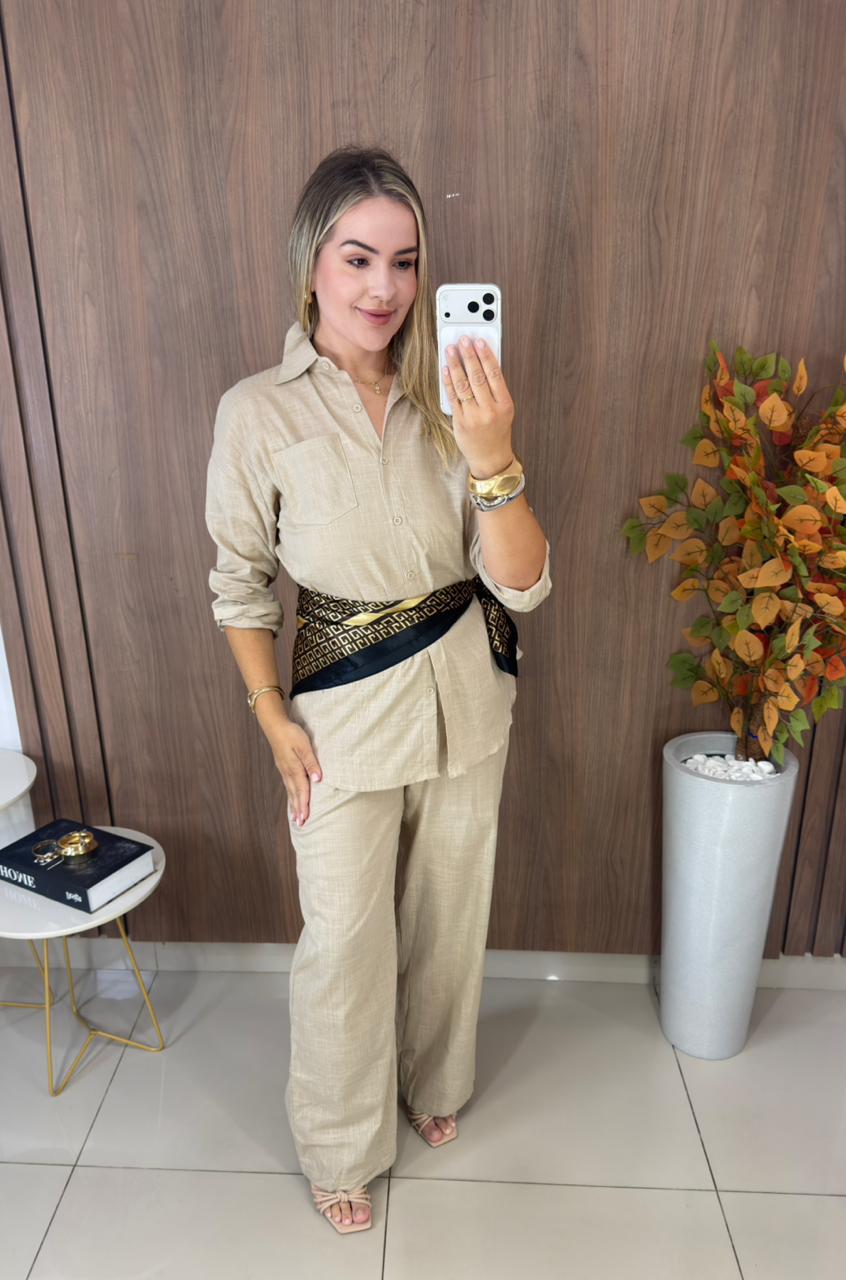 - Conjunto composto por calça e camisa;