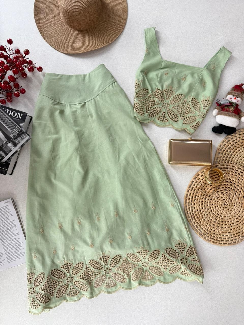 Saia: cintura 30 cm, quadril 50 cm , comprimento 100 cm
