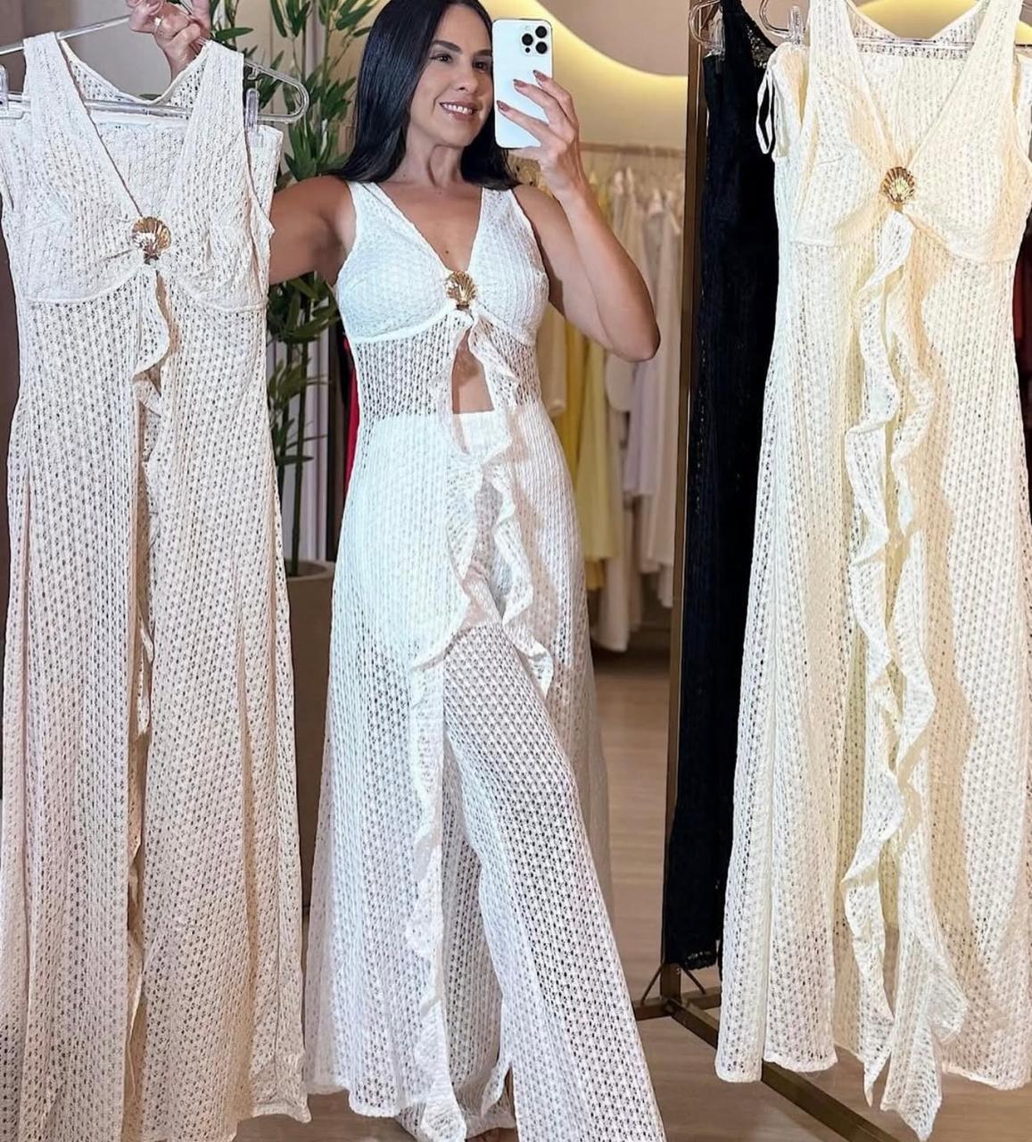 Calça: cintura 35 cm, quadril 40 cm, comprimento 105 cm