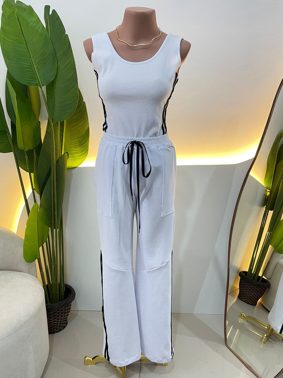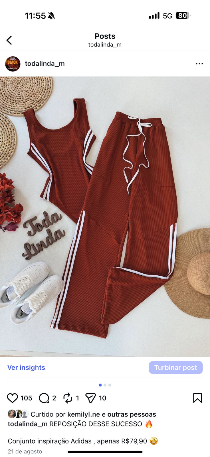 Calça: cintura 30 cm, quadril 45 cm, comprimento 105 cm