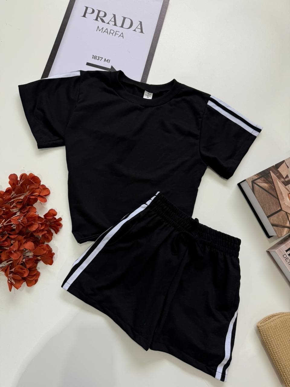 - Conjunto composto por blusa e shorts;