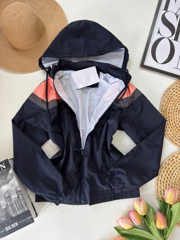- Comprimento na cor azul escuro com detalhes no CORAL/cinza;