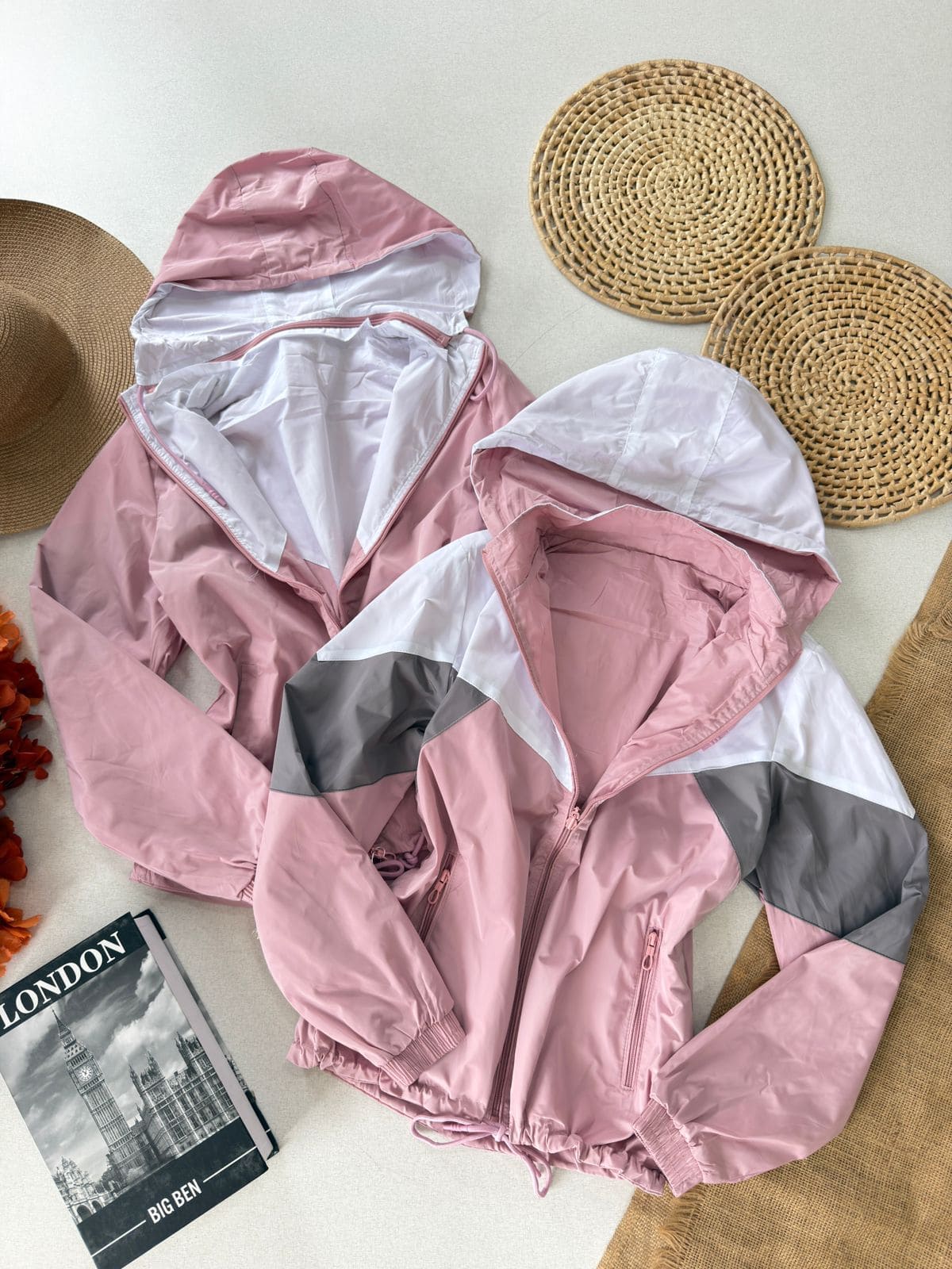 • Capuz removível com cordão ajustável;
