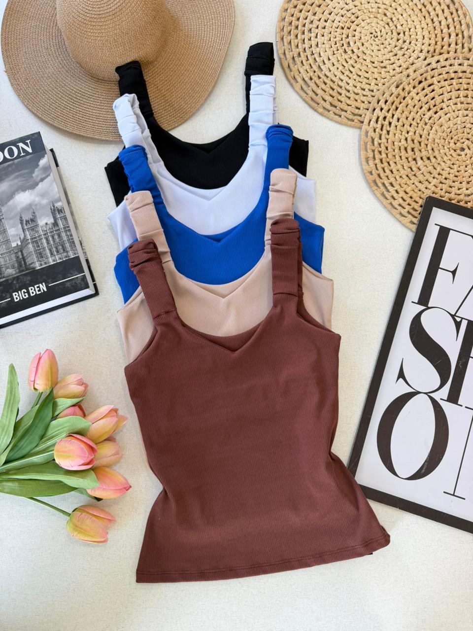 Alças largas franzidas;