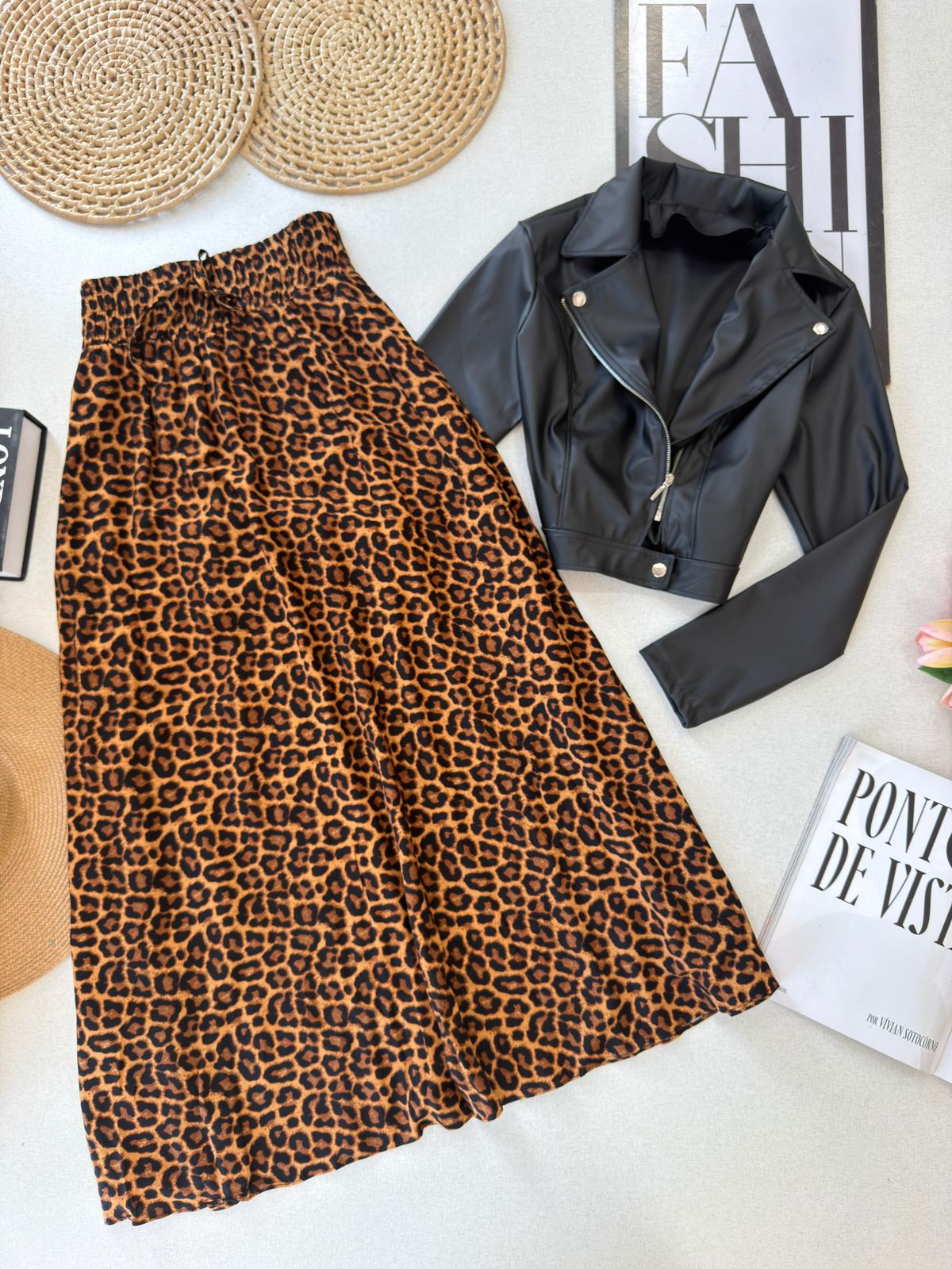 - Saia midi com estampa animal print;