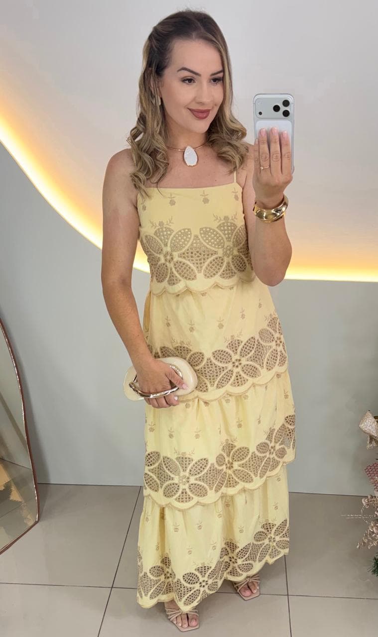 Busto 35 cm, quadril 55 cm, comprimento 120 cm