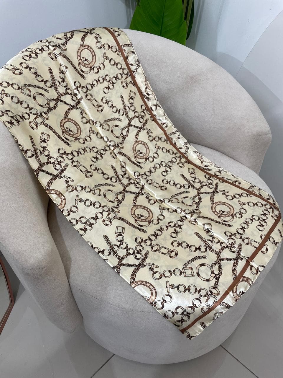 - Lenço em cetim estampado;
